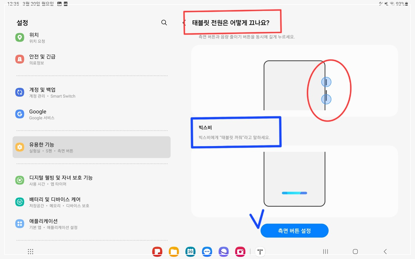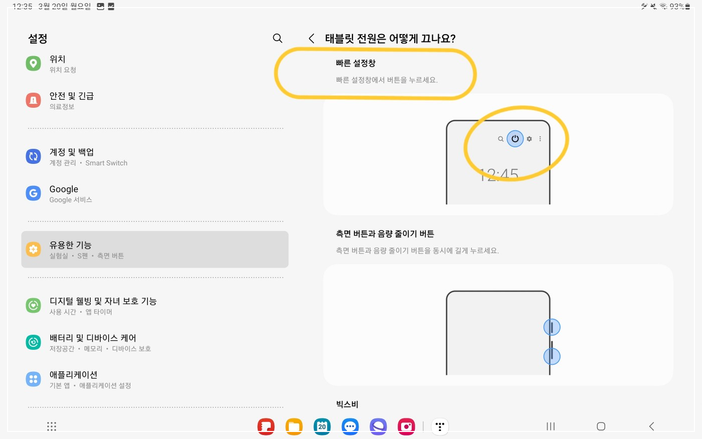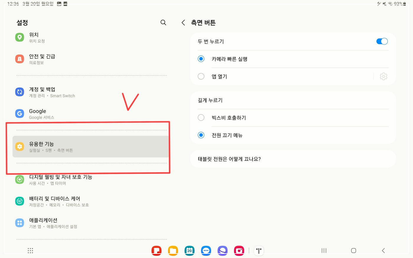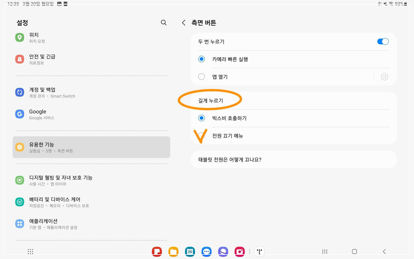 갤럭시 탭 전원 버튼 > 2 전원버튼 설정 변경하기