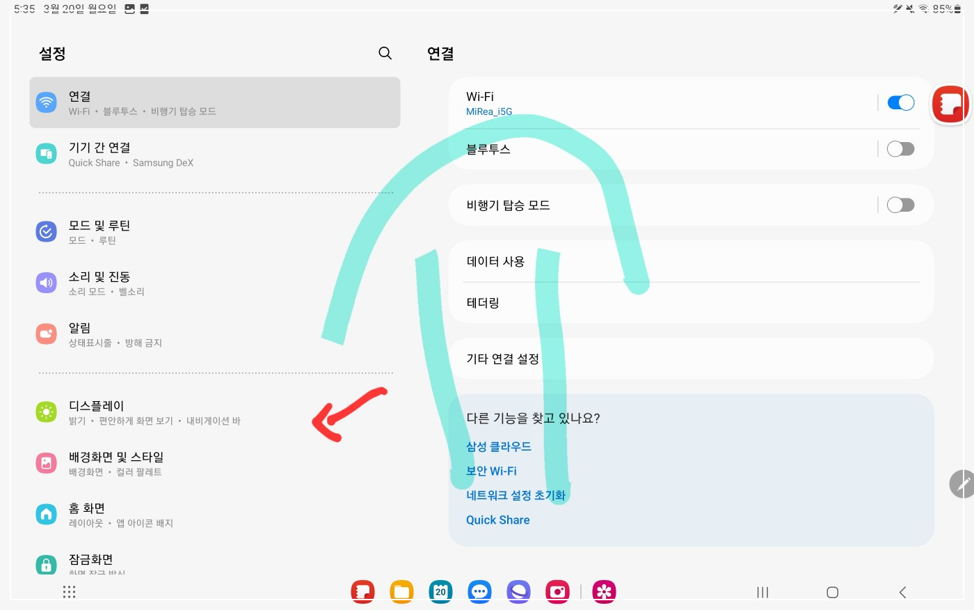 스크롤을 한번 내리시면 우측  상위 톱니바퀴 모양이 보이실 겁니다 여기서  설정 버튼을 터치하여  실행해주세요