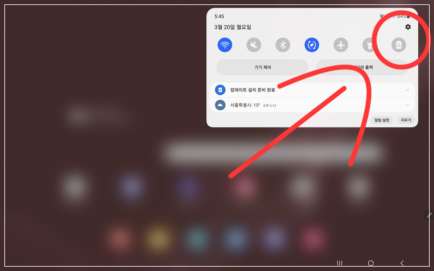 갤럭시 탭 전원 버튼> 3. 상태 창 활용