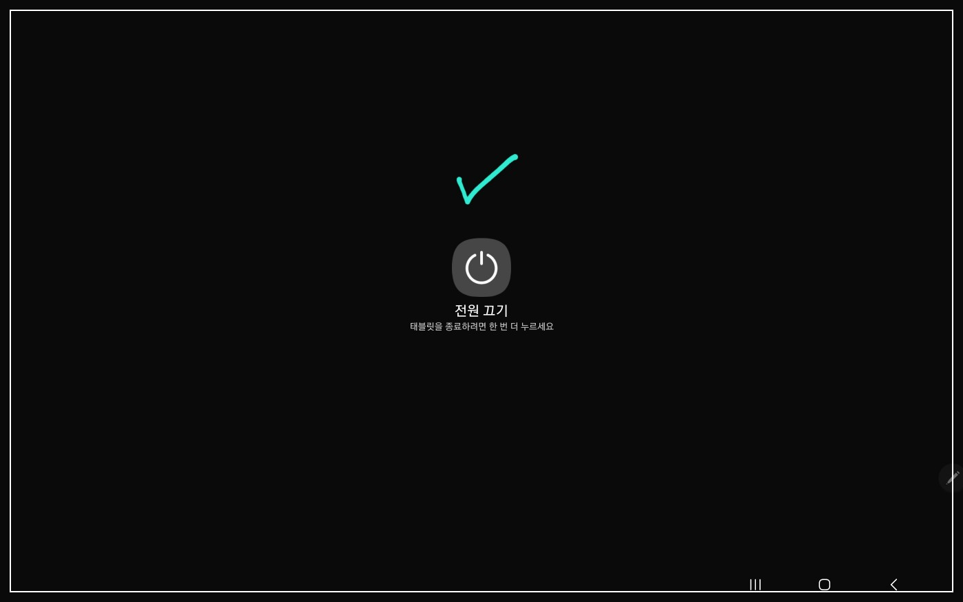 그럼 전원 버튼이 활성화됩니다 그리고 디스플레이에서 전원 끄기를 선택하시면 갤럭시탭이 꺼지는 것을 확인하실 수 있습니다