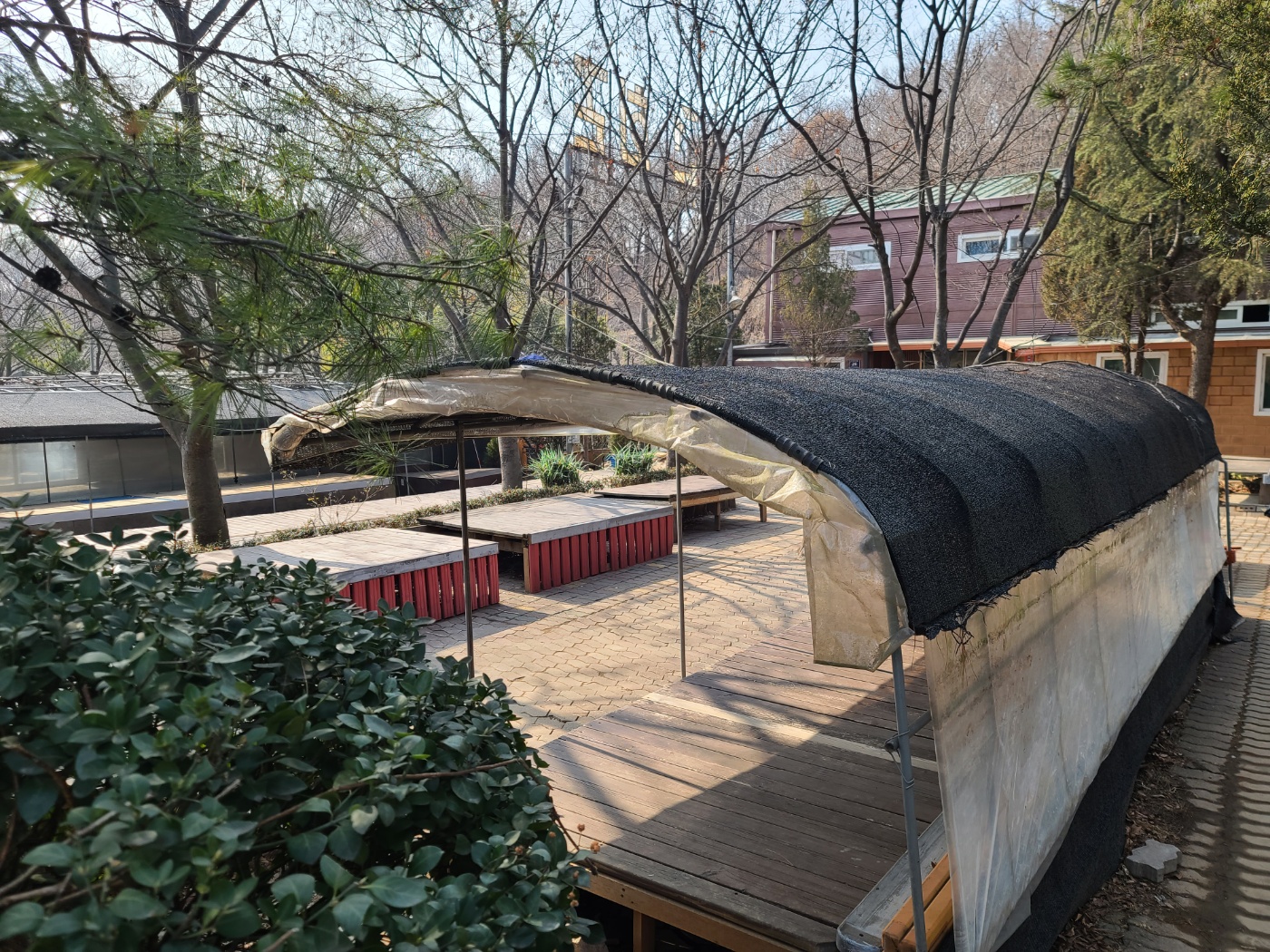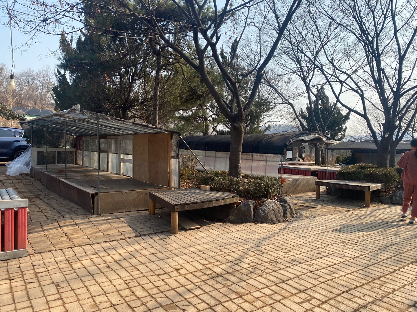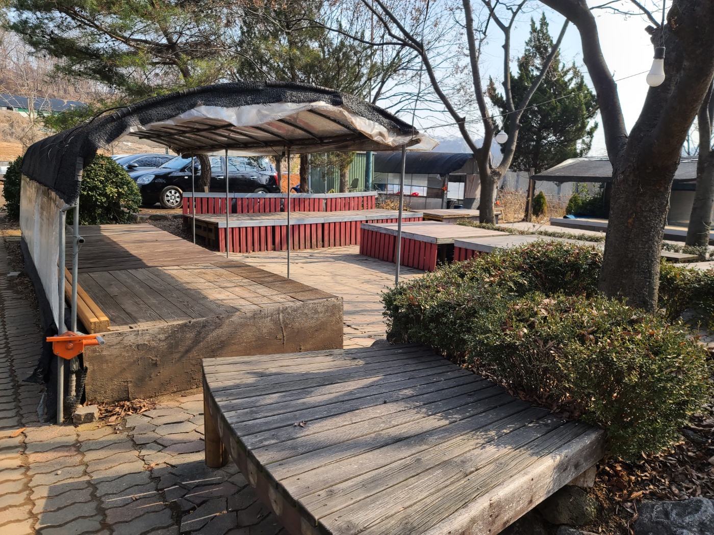 시흥 궁전 참 숯가마에 도착하면 숯가마 규모에 비해 넓은 주차장과 또 건물 사이 야외 쉼터에 평상이 많아서 쉴 곳은 매우 많습니다