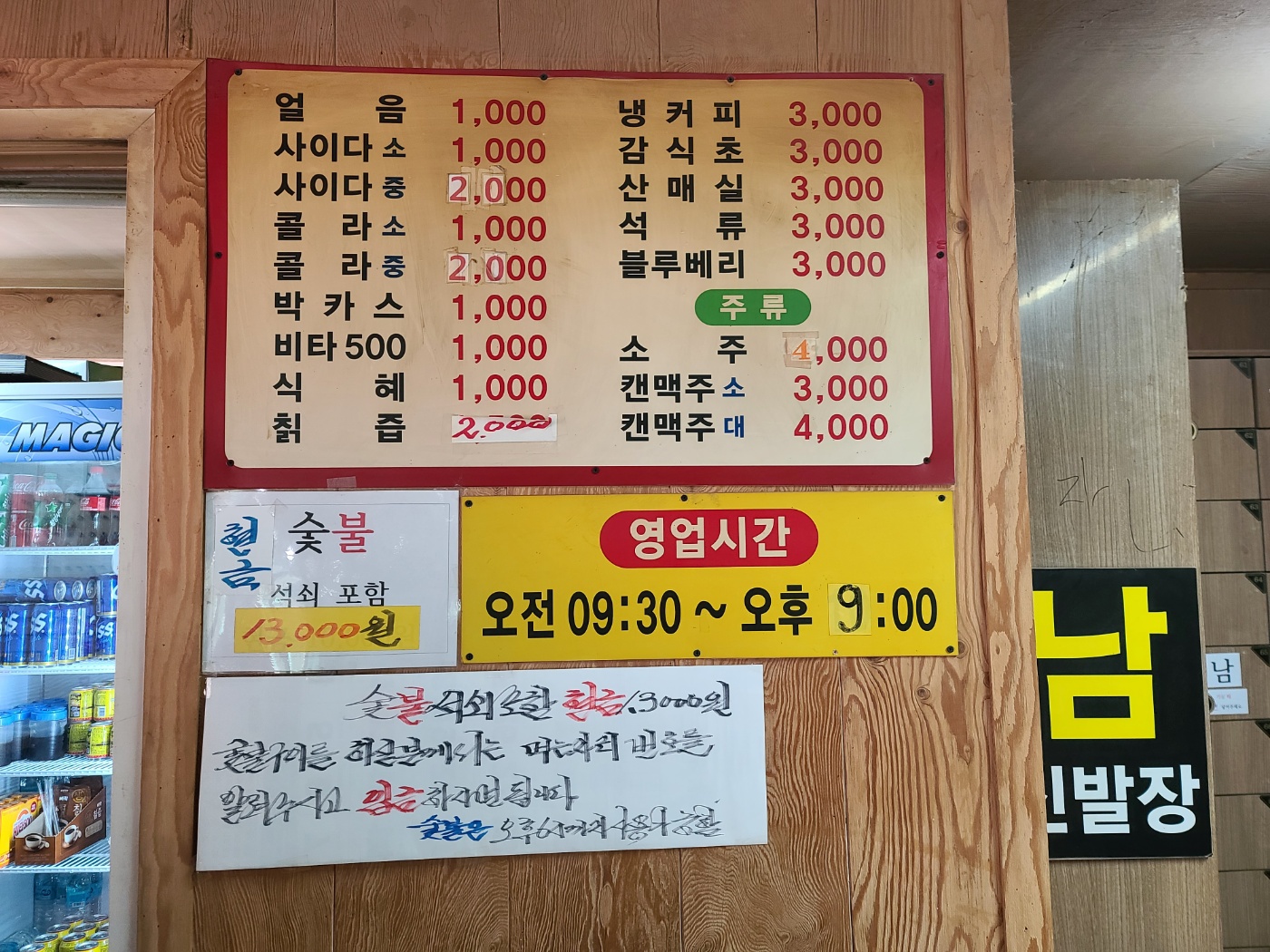 9.음식물 반입이 가능하며 맥주 소주 음료등을 판매합니다 얼음-2000원