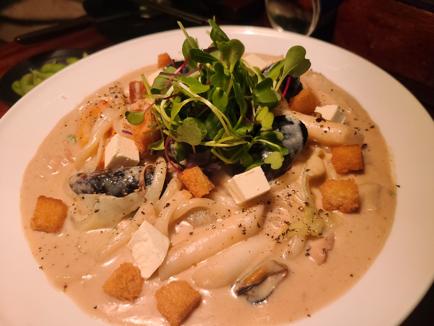 꾸덕한 크림 소스가 맛있는 까르보나라 해물 떡볶이 ! 여성분들에게 사랑받는 안주가 아닐까 싶습니다 느끼한거 좋아하는 분들이라면 강추합니다