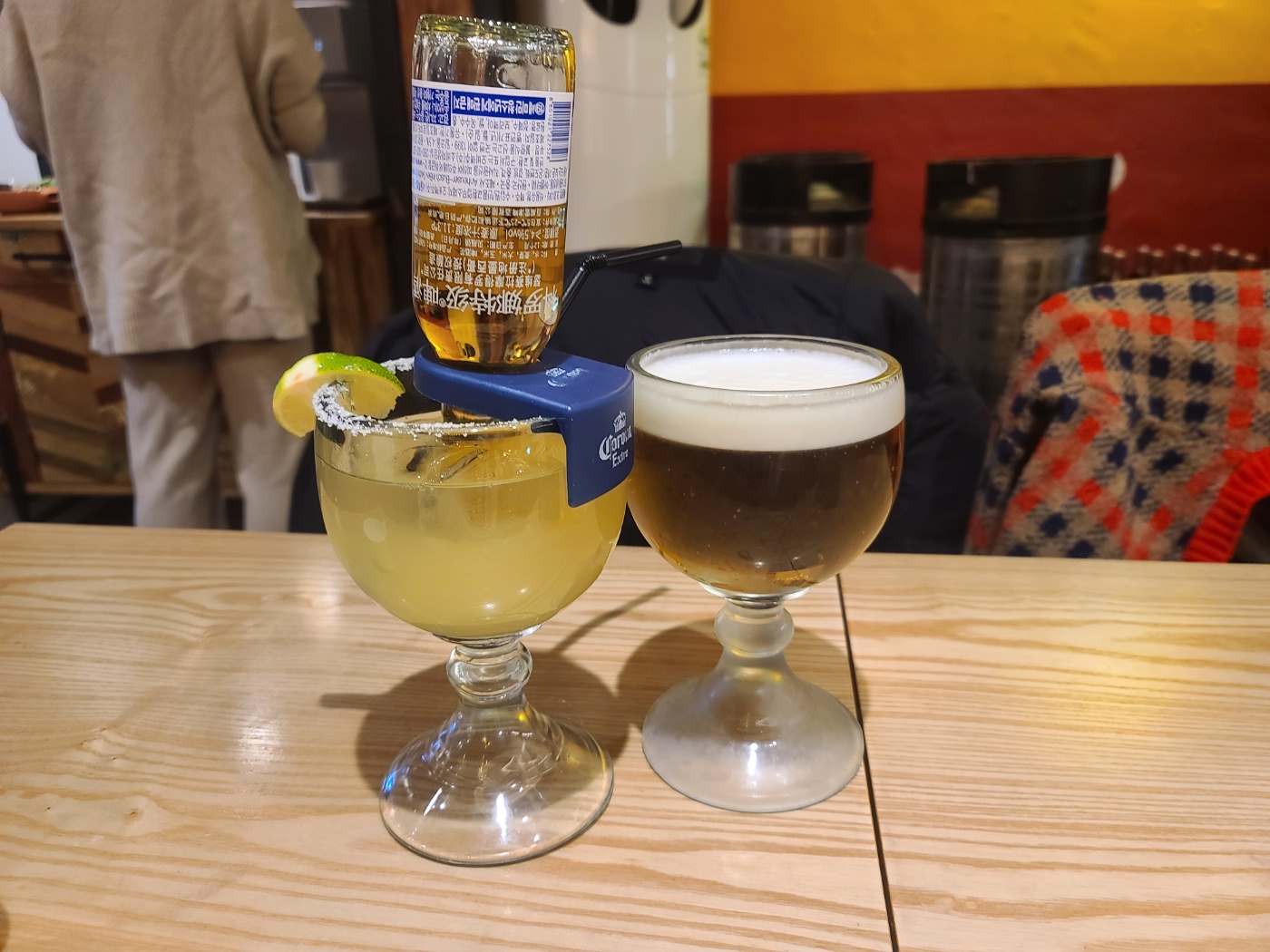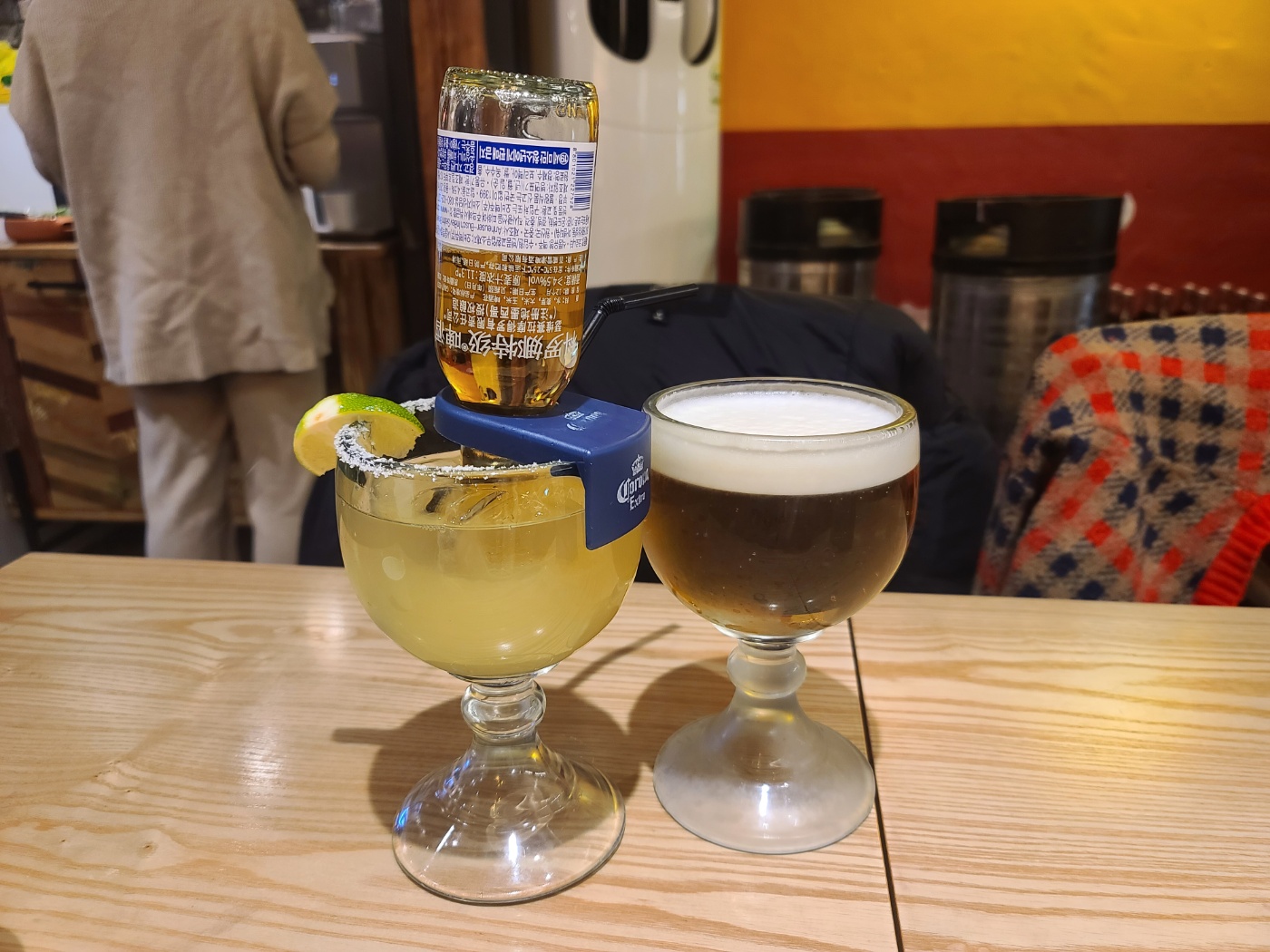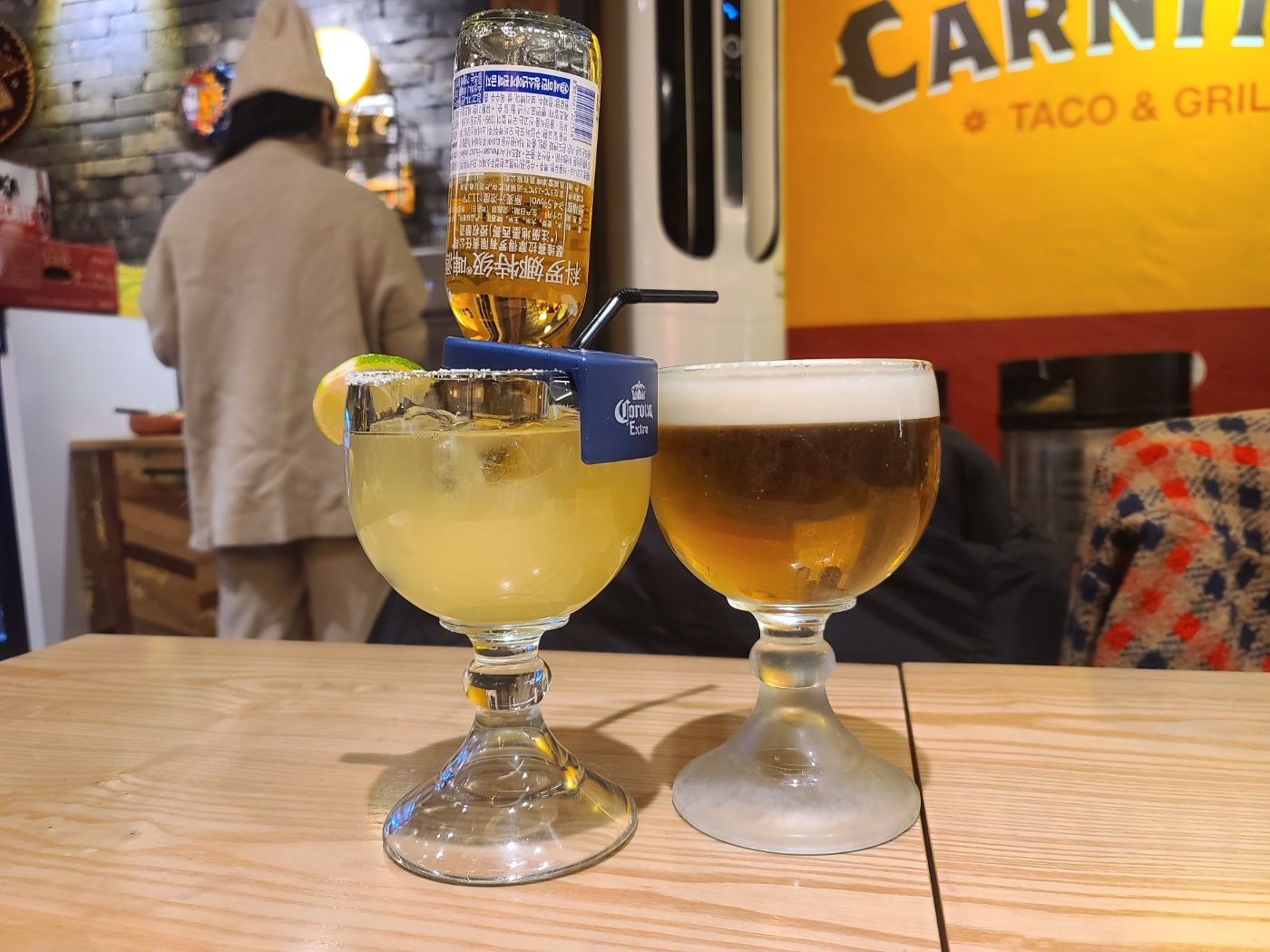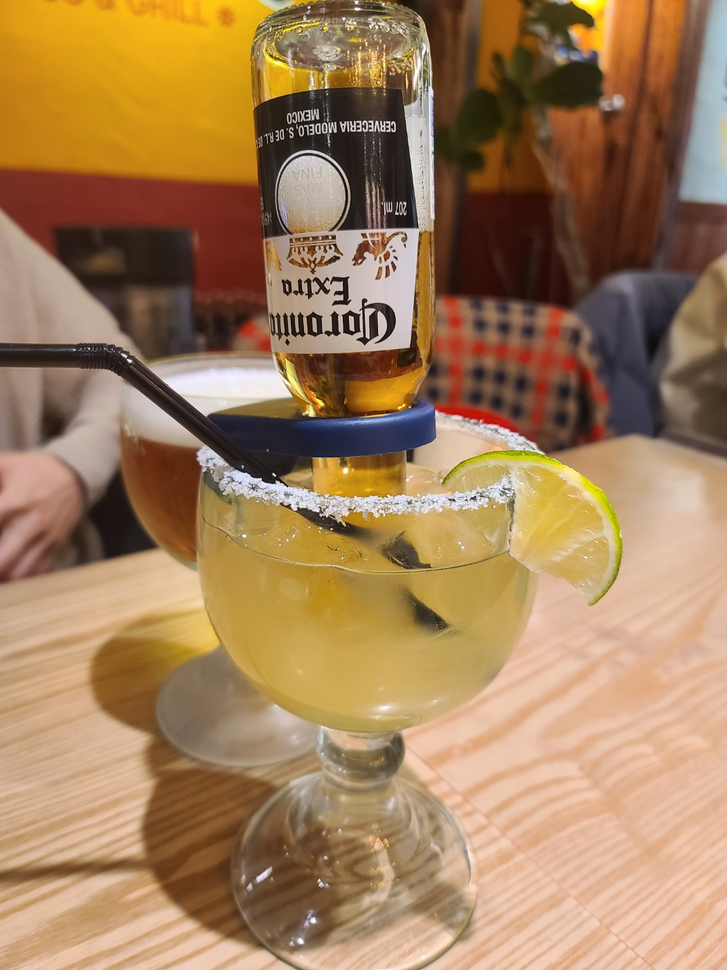 귀여운 코로나 한병이 들어간 코로나리타! 너무 귀여워서 옆테이블에 있는거 보고 시켰습니다