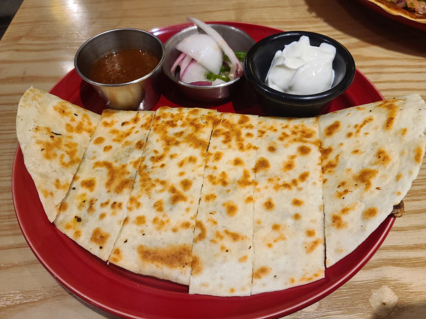 그리고 두번째 메뉴는 퀘사디아 (초리초)입니다 안에 치즈가 듬뿍 들어 있어서 맛있었습니다 겉은 적당히 바삭하고 안에 양념과 치즈가 조화를 잘 이뤄서 느끼하지 않고 좋았던것 같아요