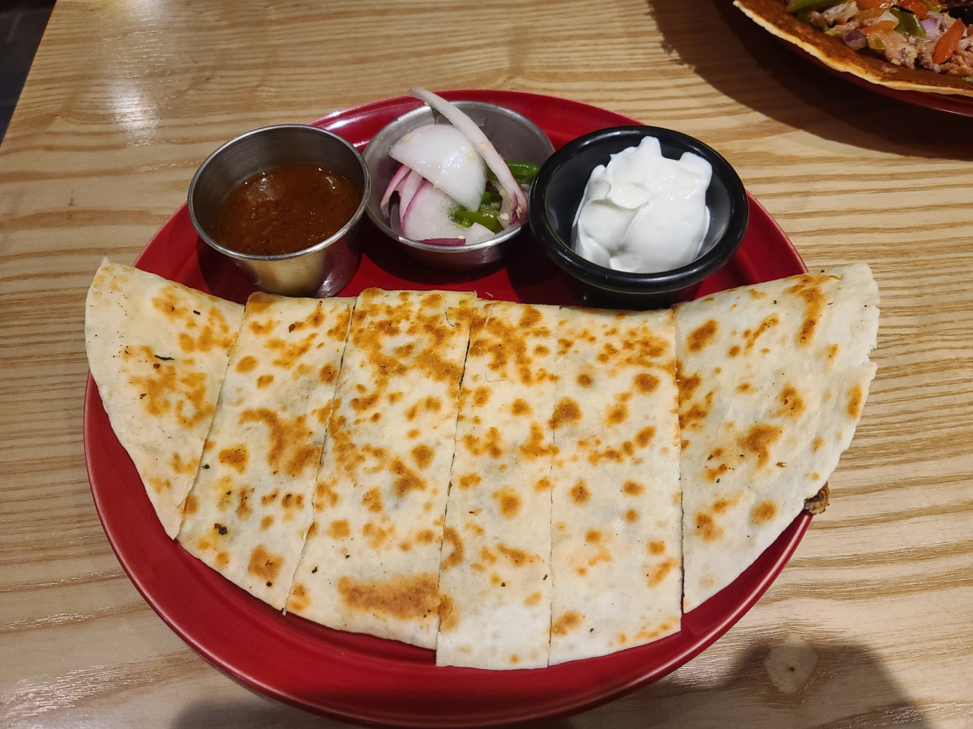 그리고 두번째 메뉴는 퀘사디아 (초리초)입니다 안에 치즈가 듬뿍 들어 있어서 맛있었습니다 겉은 적당히 바삭하고 안에 양념과 치즈가 조화를 잘 이뤄서 느끼하지 않고 좋았던것 같아요