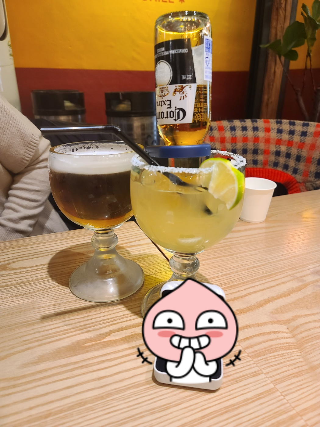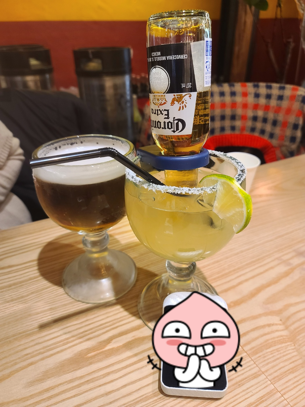 귀여운 코로나 한병이 들어간 코로나리타! 너무 귀여워서 옆테이블에 있는거 보고 시켰습니다