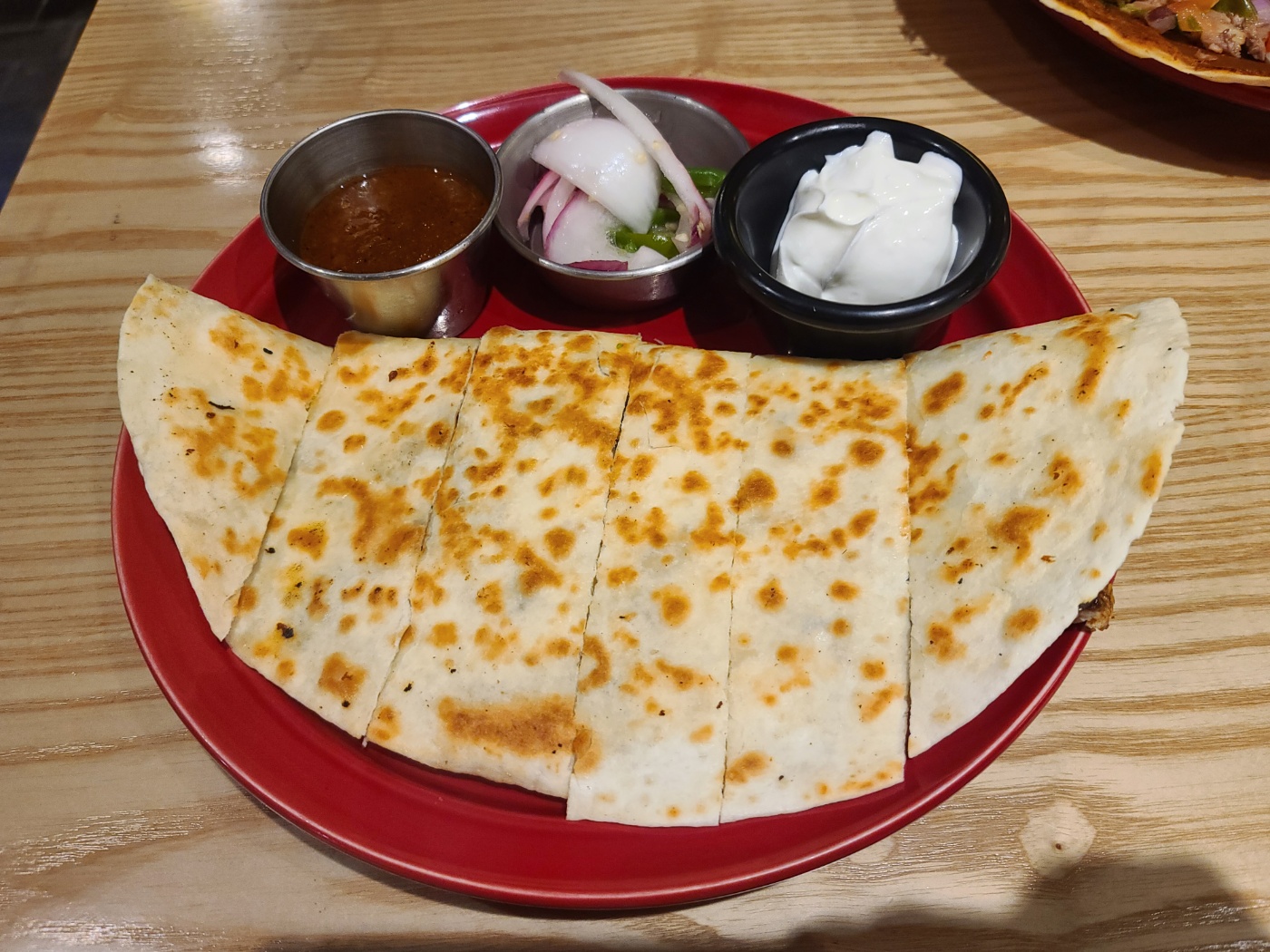 그리고 두번째 메뉴는 퀘사디아 (초리초)입니다 안에 치즈가 듬뿍 들어 있어서 맛있었습니다 겉은 적당히 바삭하고 안에 양념과 치즈가 조화를 잘 이뤄서 느끼하지 않고 좋았던것 같아요