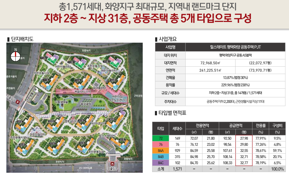 지하2층~지상31층 공동주택 총 5개 타입으로 구성되었습니다