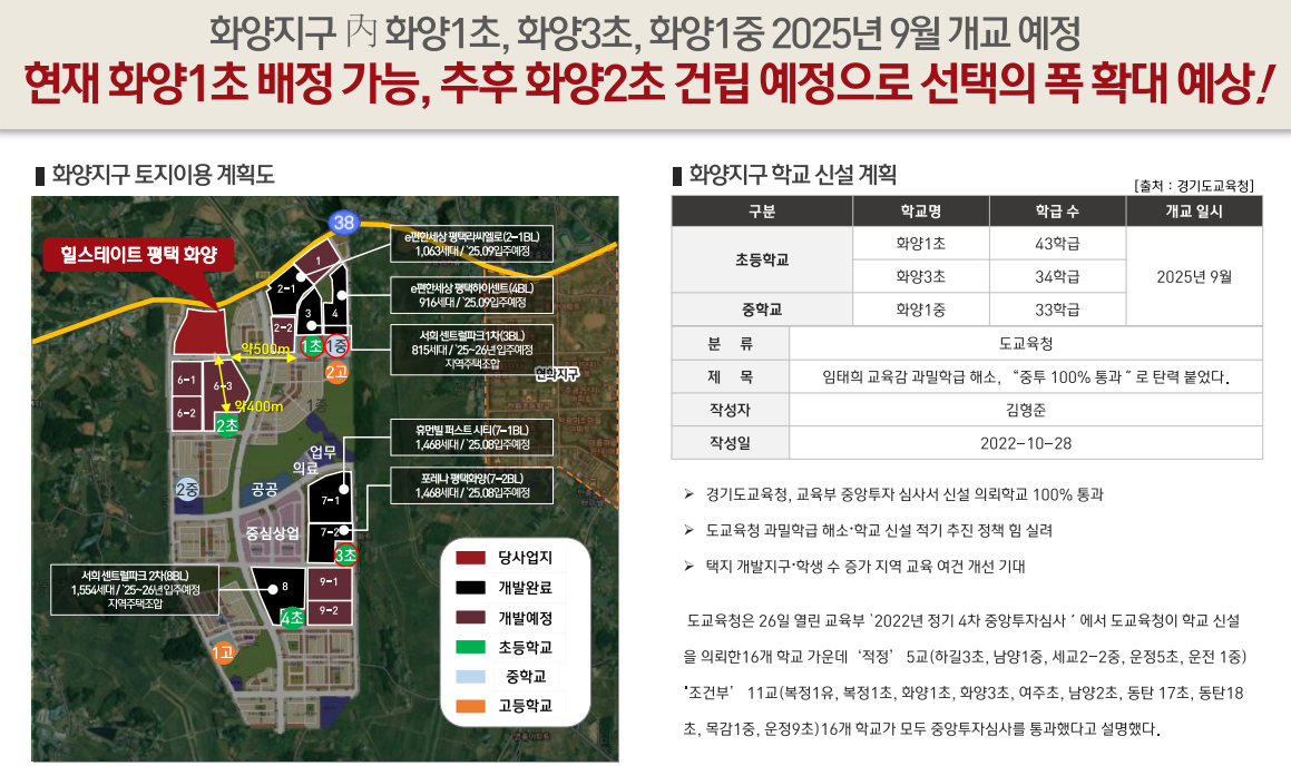 화양지구는 서평택의 주거 중심으로 발전하면서 저평가에서 미래 투자가치가 높은 곳으로 수요자들의 눈길을 끌고 있습니다